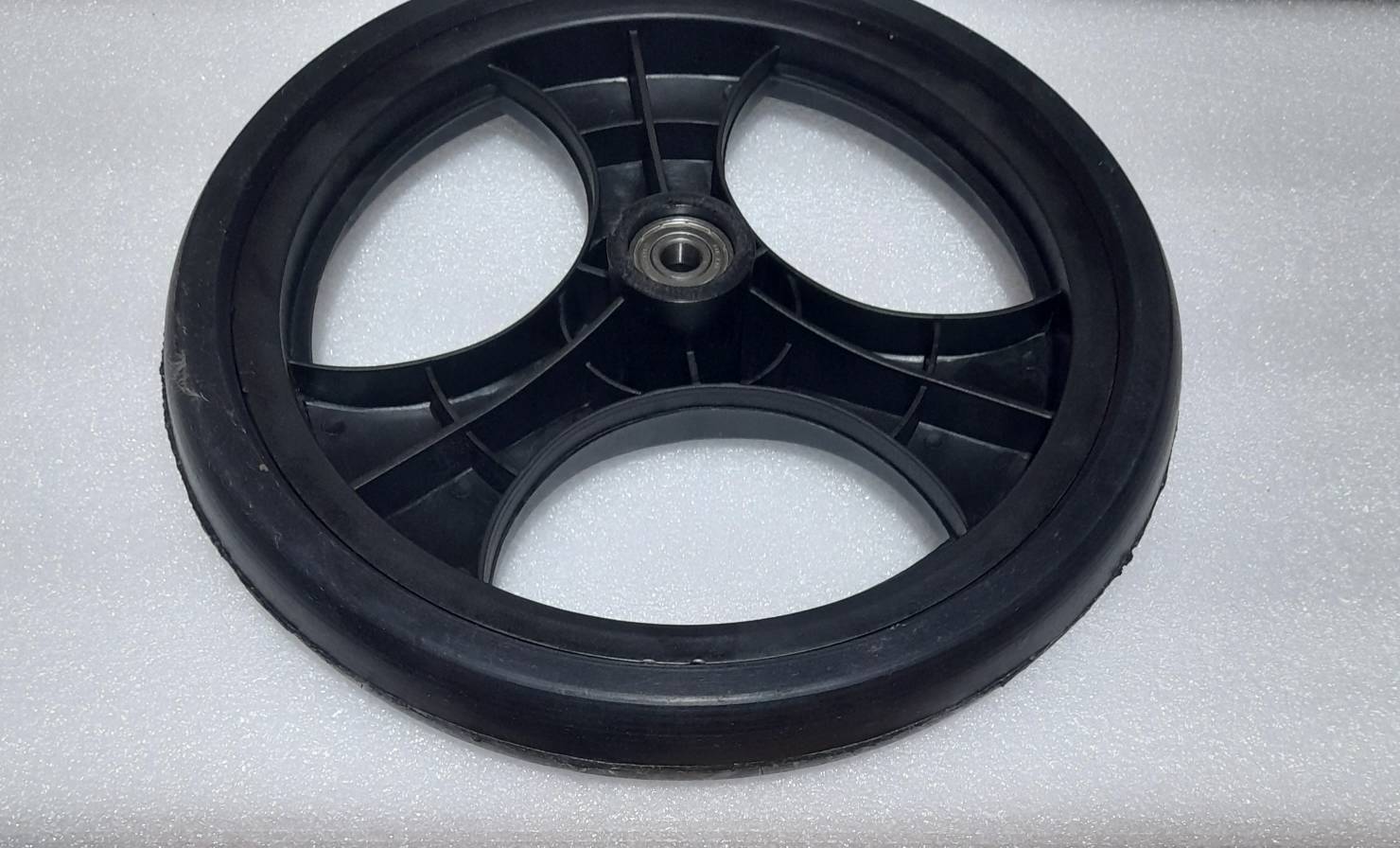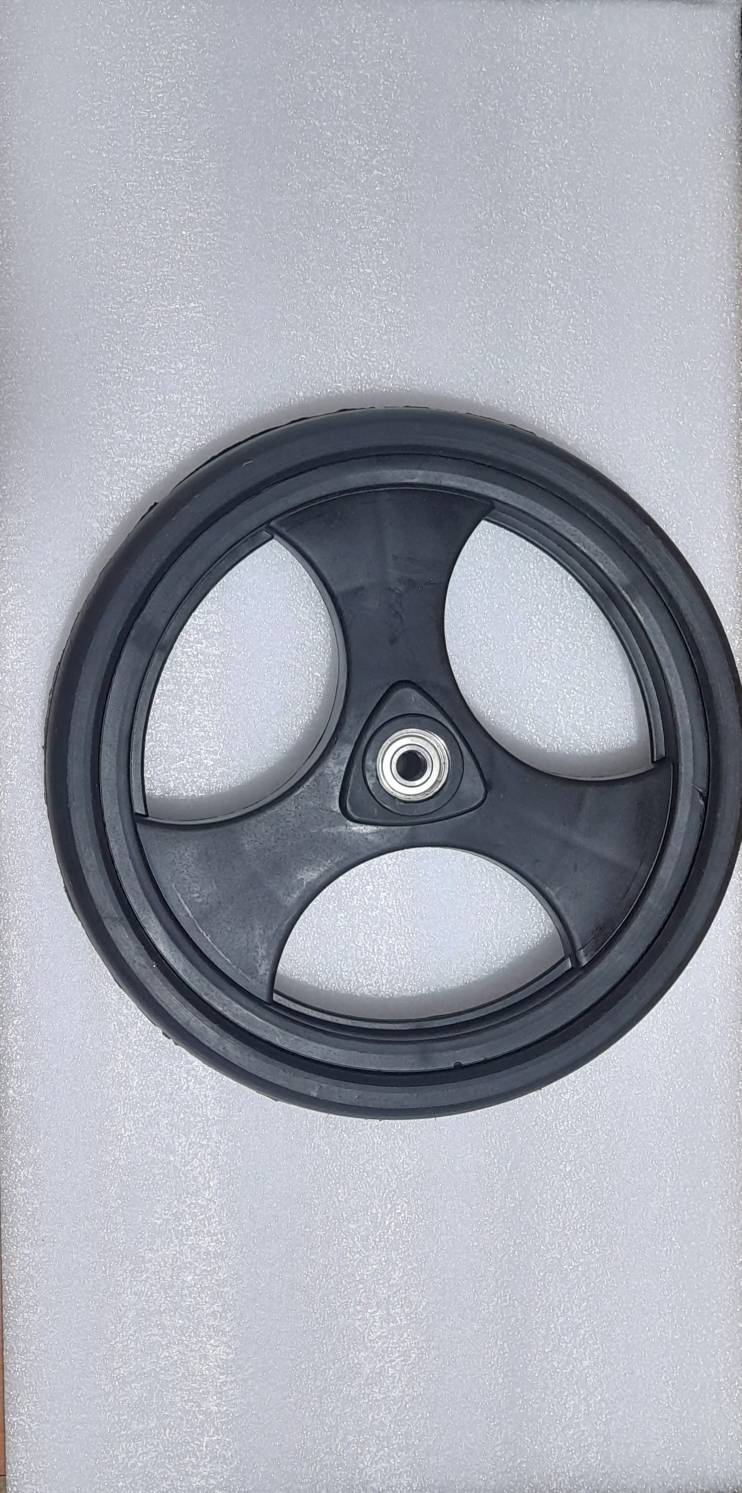 چرخ 12 اینچ توپر قابل استفاده برای ویلچرهای قابل حمل/ رنگ مشکی / بلبرینگ دار/ رینگ پلاستیکی جنس مقاوم/رینگ چرخ از جنس پلاستیک نشکن و مستحکم از جنس پلی آمید الیاف دار و ضدضربه و ضدسایش و ضد خورندگی با استحکام بالا