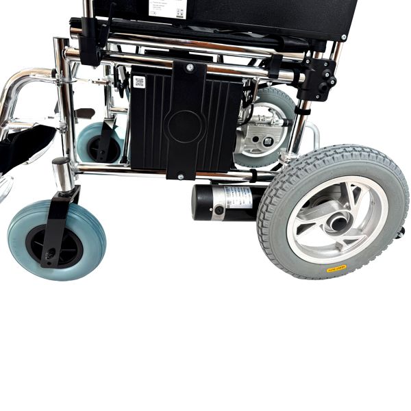 تحرک آسان: این ویلچر برقی با موتور قوی و باتری با ظرفیت بالا، امکان تحرک آسان را برای افراد دارای معلولیت یا سالمندان فراهم می‌کند.طراحی ارگونومیک: طراحی ویلچر به گونه‌ای است که راحتی کاربر را در حین نشستن و حرکت تضمین می‌کند، از جمله پشتی نرم و زیرپایی‌های قابل جدا شدن. چرخ‌های بزرگ و مقاوم: چرخ‌های بزرگ و باکیفیت این ویلچر، حرکت بر روی سطوح ناهموار را آسان‌تر می‌کند و ثبات بیشتری را فراهم می‌آورد.قابلیت تا شدن: این ویلچر به راحتی تا می‌شود و در نتیجه حمل و نقل آن ساده‌تر است، به ویژه برای سفرها. وزن سبک: با وجود استحکام بالا، این ویلچر وزن سبکی دارد که جابجایی و استفاده از آن را آسان‌تر می‌کند.