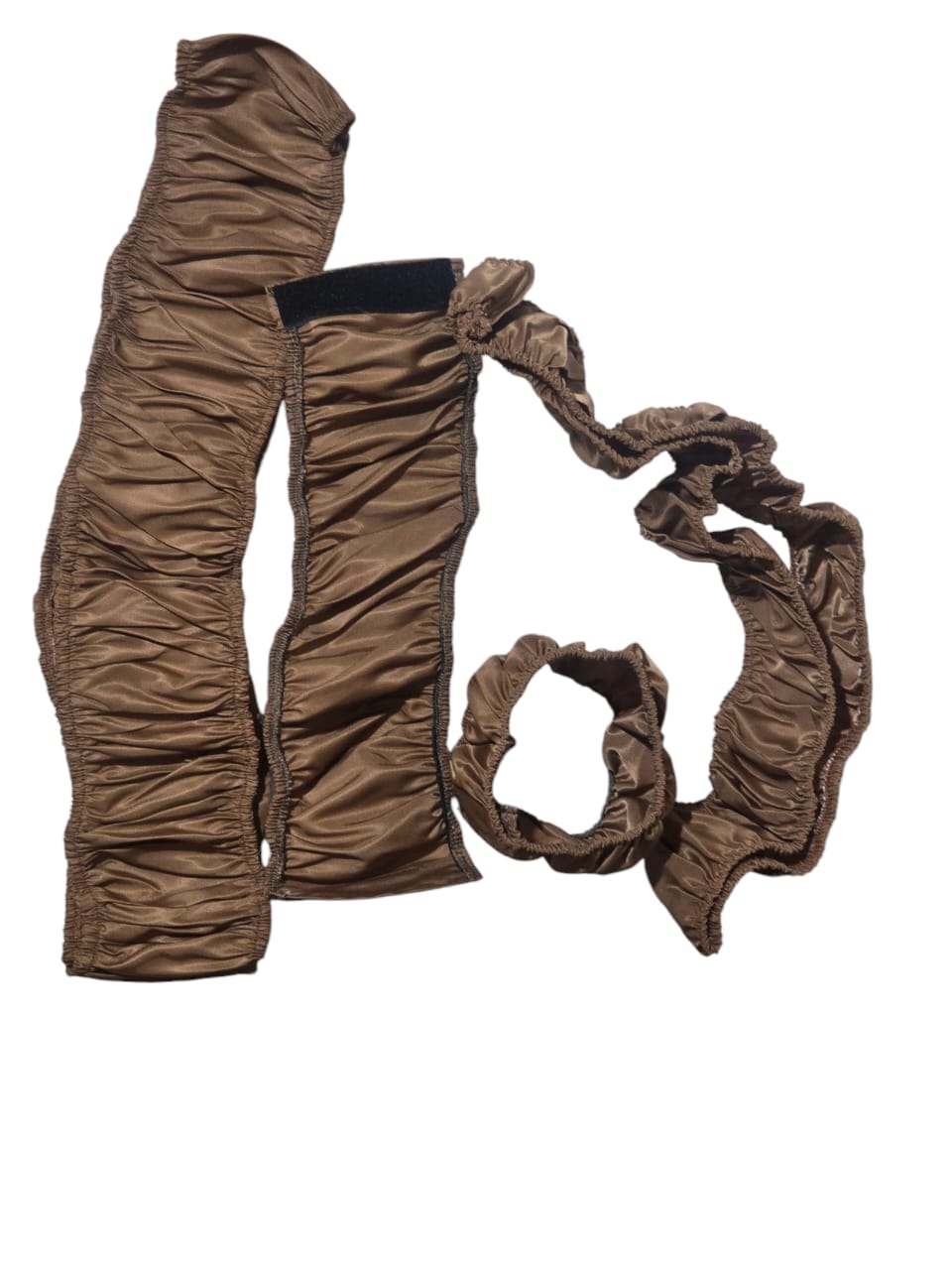 شامل 2 عدد کاور چرخ جلو با قطر 50*200و 6 اینچ و 7 اینچ چسبی/ 2 عدد کاور کشی چرخ عقب ویلچر به قطر 24 اینچ و 12 اینچ نصب راحت بروی انواع ویلچر هاکاور روی چرخ های جلو از وسط دوشاخ رد شده و بصورت چسبی نصب میشودکاور روی چرخ های عقب با لبه های کشدوزی شده دور چرخ قرار میگیردبسیار مناسب برای ویلچر هایی که داخل منزل و بیرون از منزل استفاده میشود.جهت جلوگیری از آلودگی چرخ های ویلچر در منزل    / جنس برزنت درجه یک ضدآب