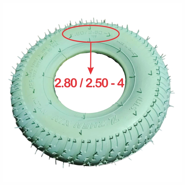 لاستیک و تیوپ ویلچر برقی250*280 چینی/مناسب برای ویلچر برقی های مبله ، ویلچر برقی های شرکت فراتک و اسکوتر برقی های خارجی /لاستیک بادی آجدار + تیوپ بادی با اندازه درج شده  4 – 2.50 / 2.80