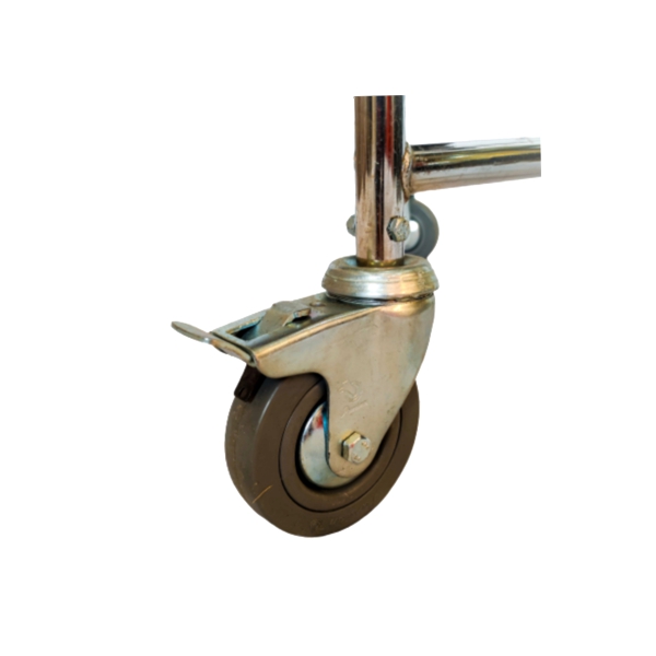 چرخ های جلو و عقب این صندلی حمام از نوع توپور هستند. قطر همگی چرخ ها برابر 10 cm است.