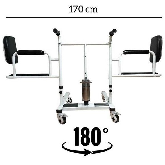 این دستگاه دارای قابلیت بلند کردن بیمار از روی تخت بوده و نیازی به نیروی بدنی ندارد. به این صورت که دو طرف صندلی که ۱۸۰ درجه باز شدند به زیر بیمار رفته و بیمار را با جک پدالی بالا میبرید.