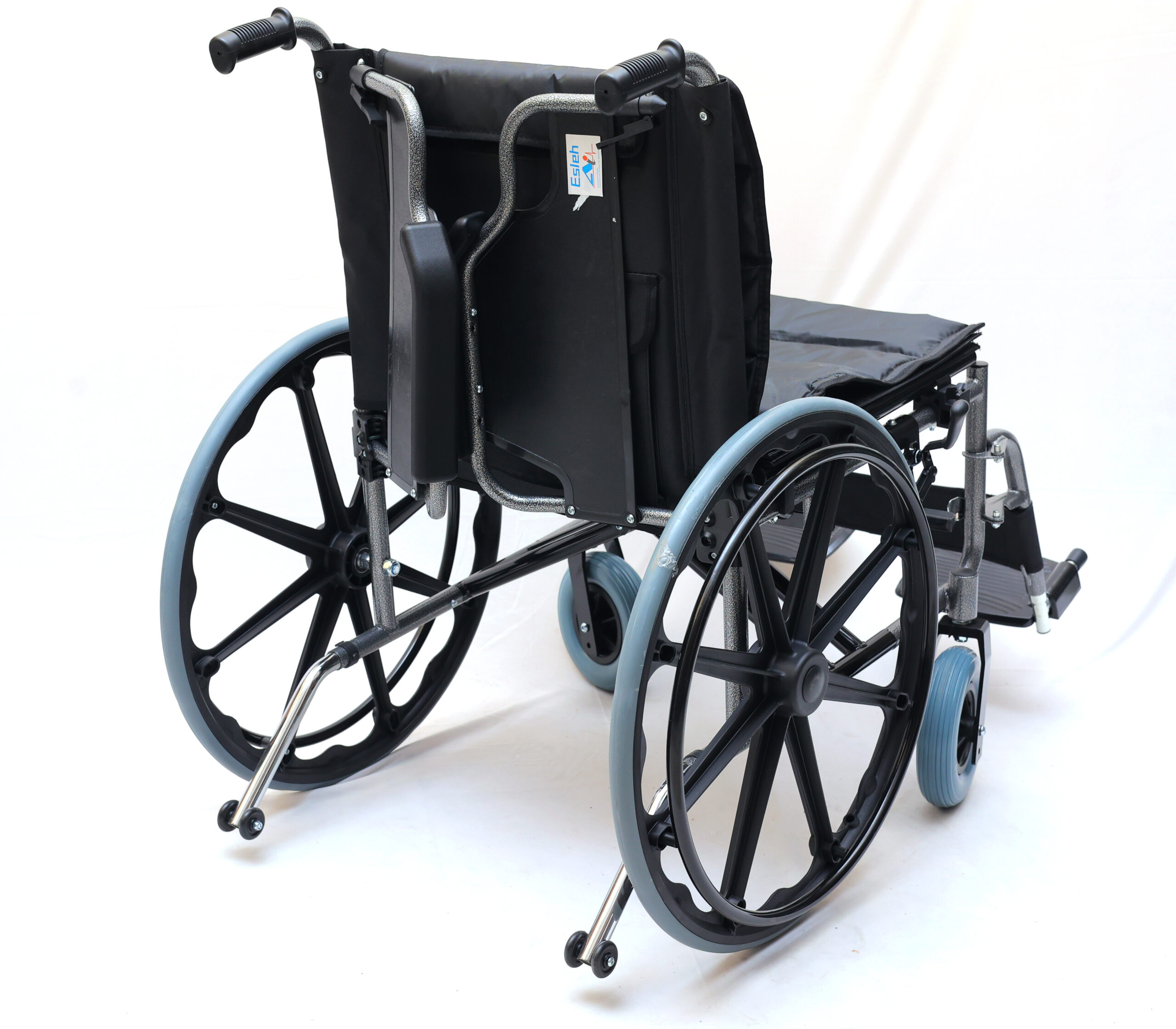 - دارای چرخ محافظ جهت جلوگیری سقوط ویلچر از پشت