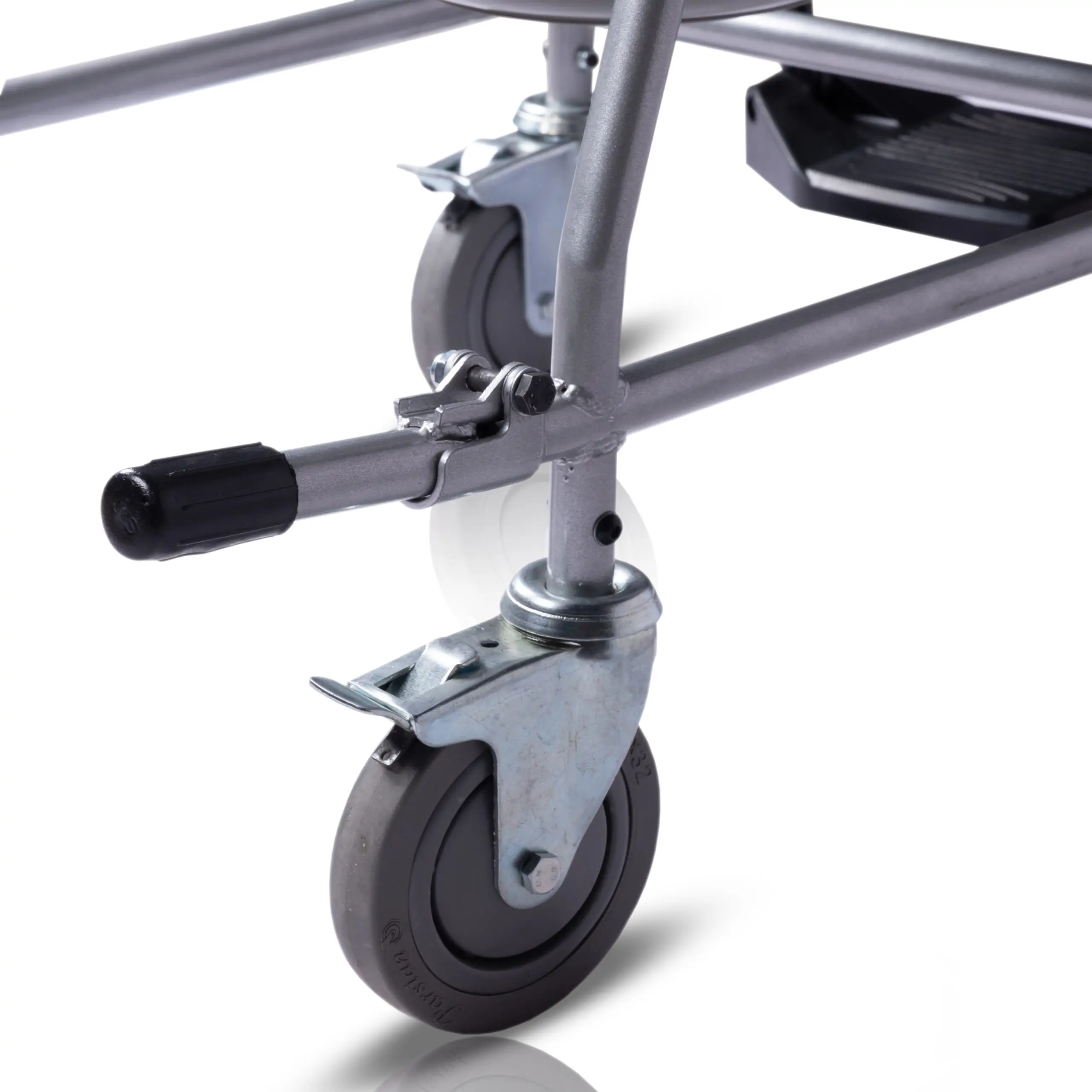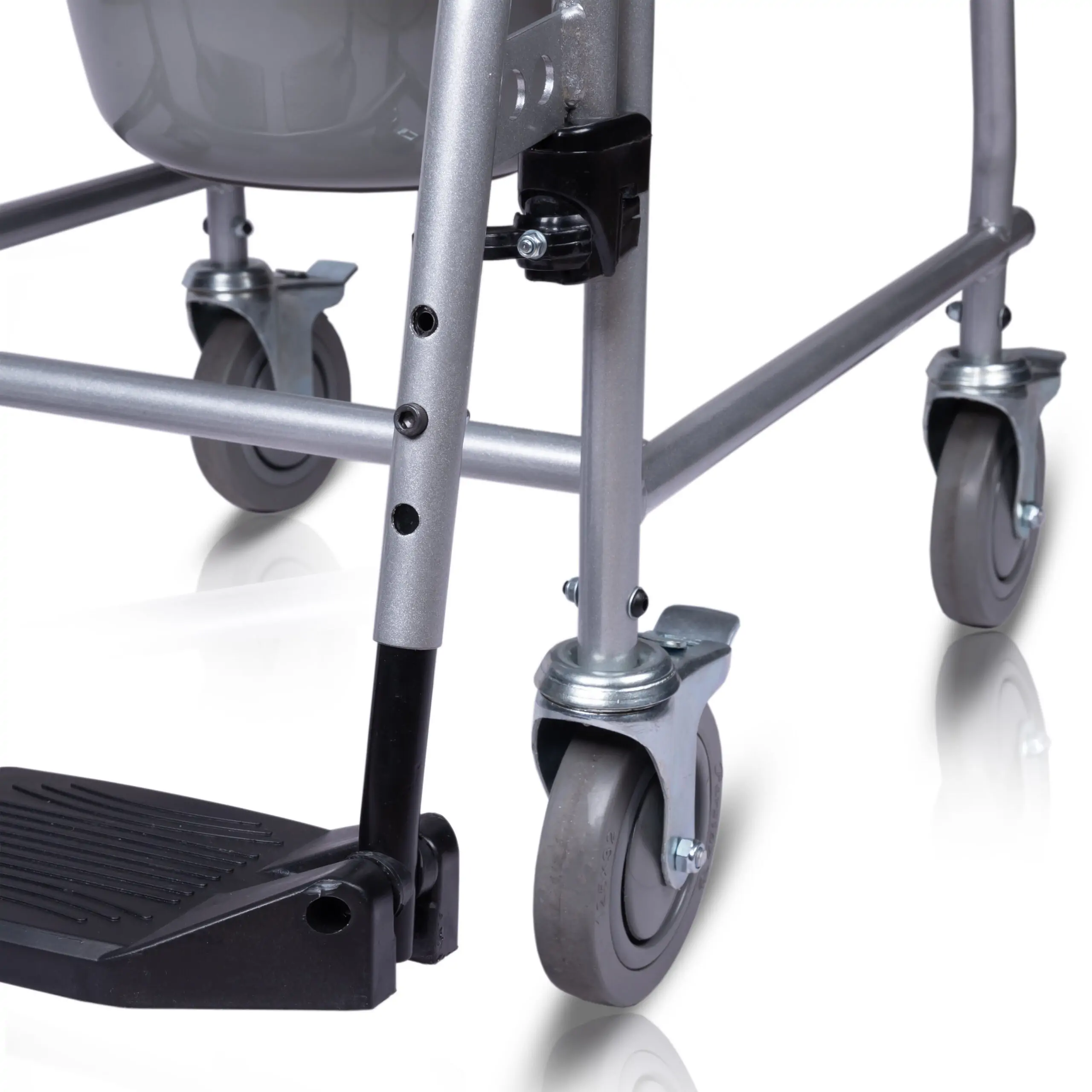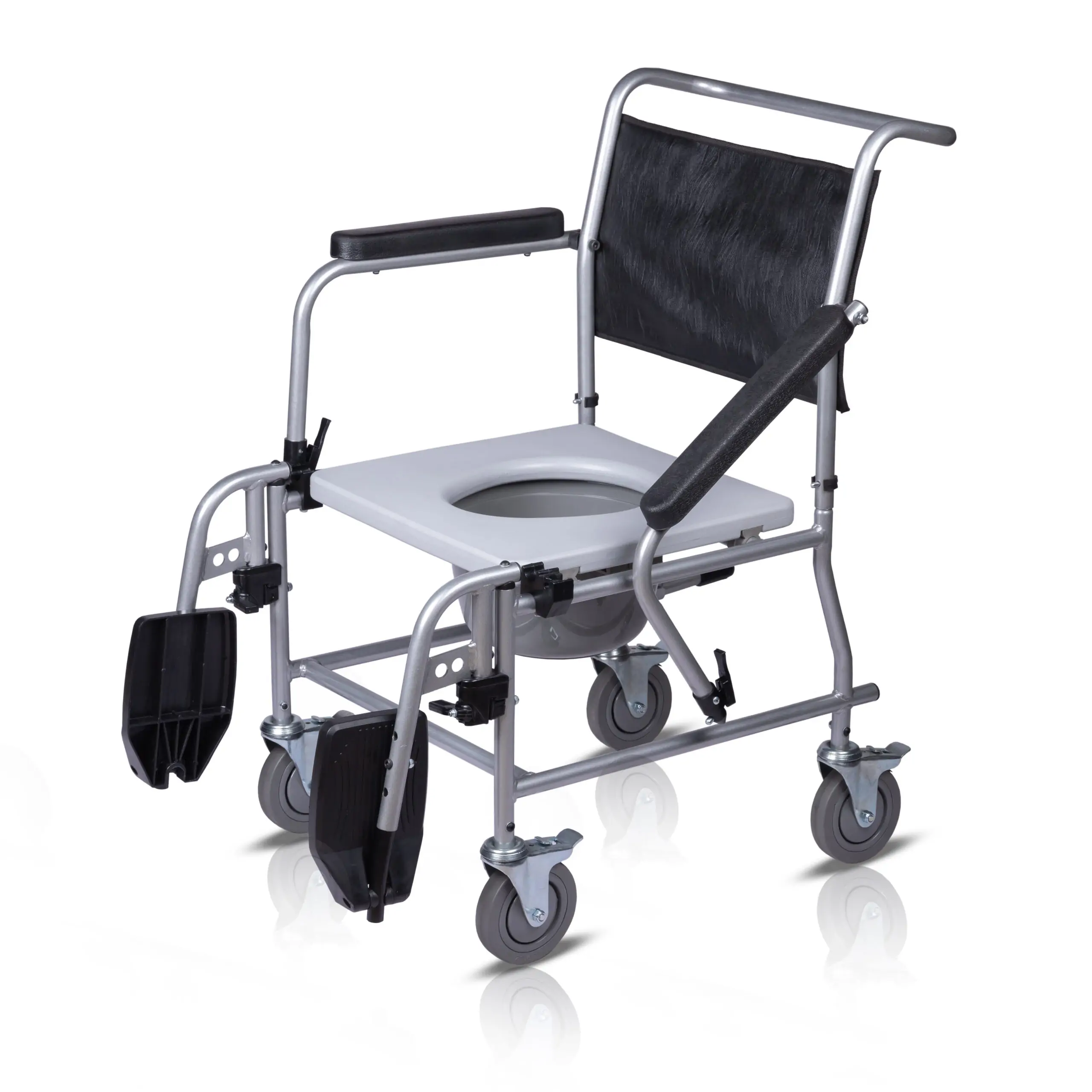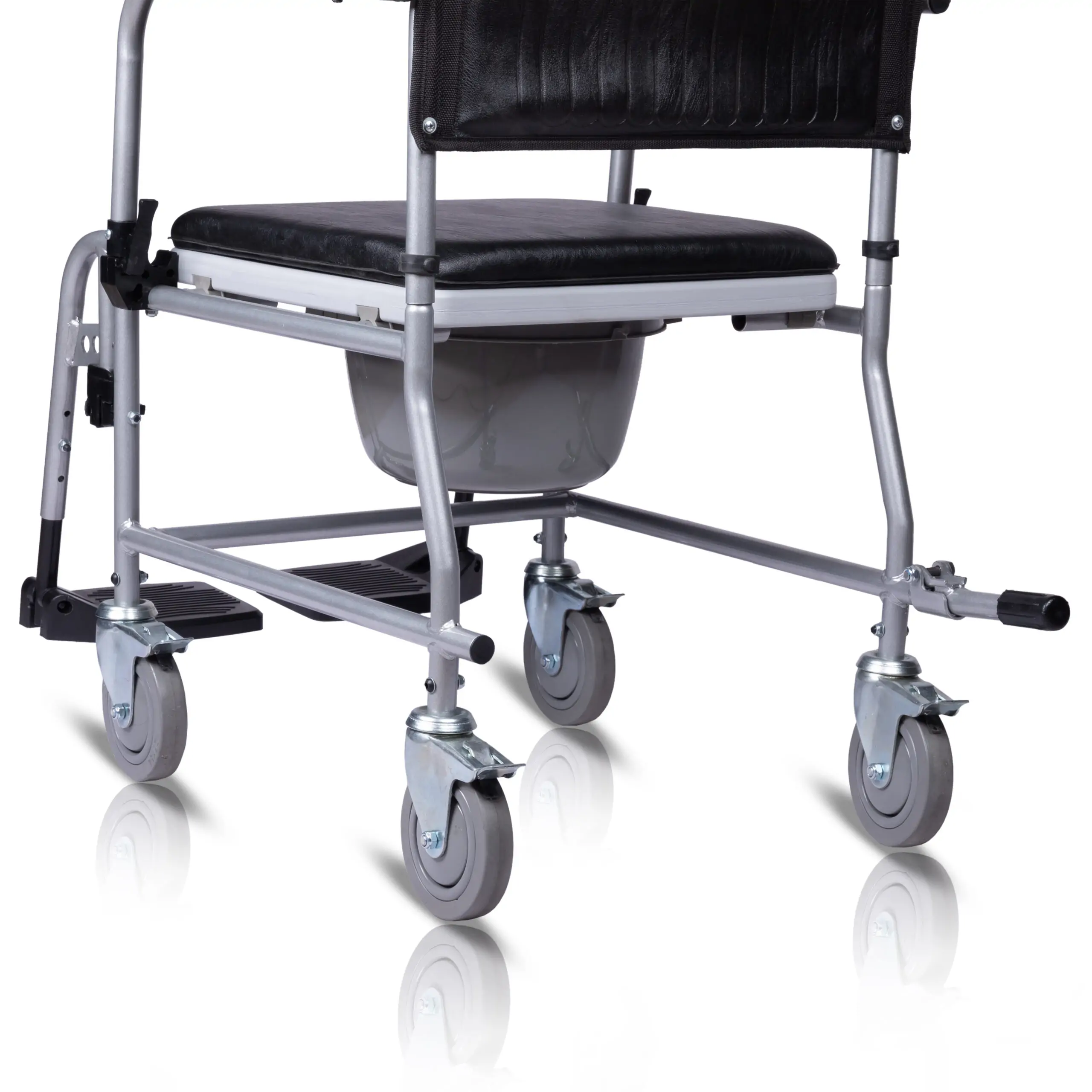 • صندلی حمام و توالت چرخدار: این نوع صندلی علاوه بر حمام، برای استفاده در توالت نیز مناسب است و معمولاً دارای نشیمنگاه با پشتی و لگن قابل جدا شدن است.