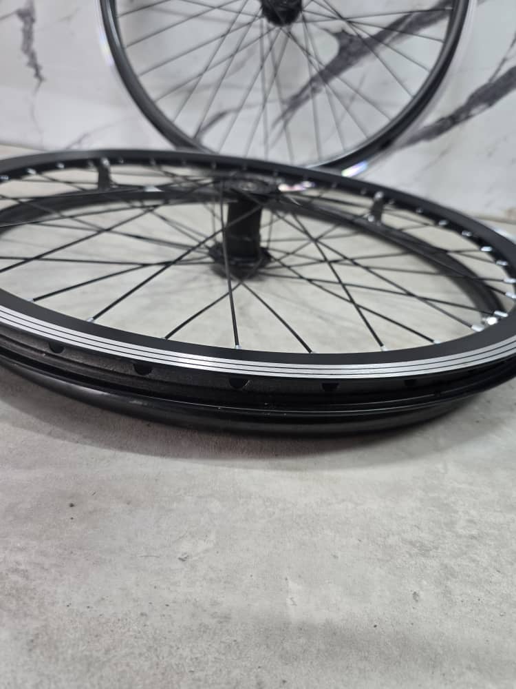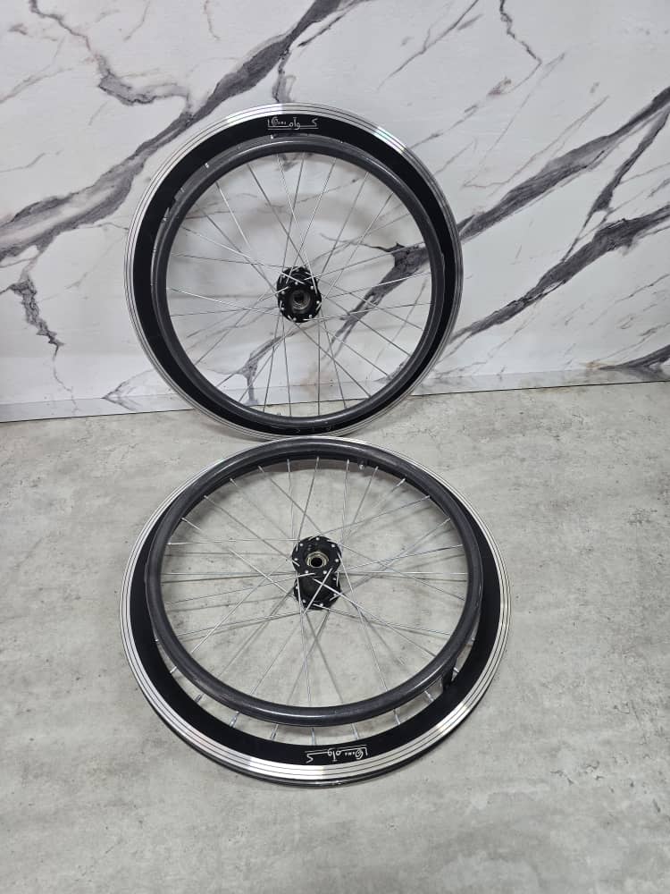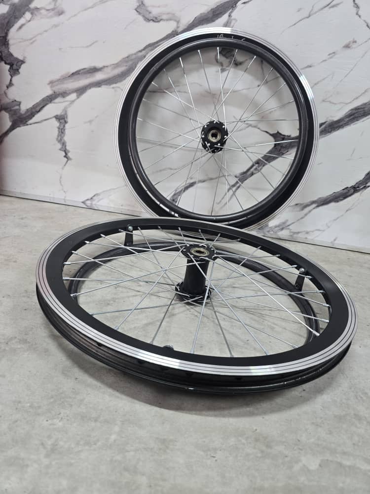 رینگ آلومینیوم ویلچر سایز 1.3/8*24 کوآما/رینگ آلومینیوم پره ای با رنگ بندی مختلف/توپی نشکن و مستحکم از جنس پلی آمید الیاف دار و ضدضربه و ضدسایش و ضد خورندگی با استحکام بالا/ همراه با هندرینگ