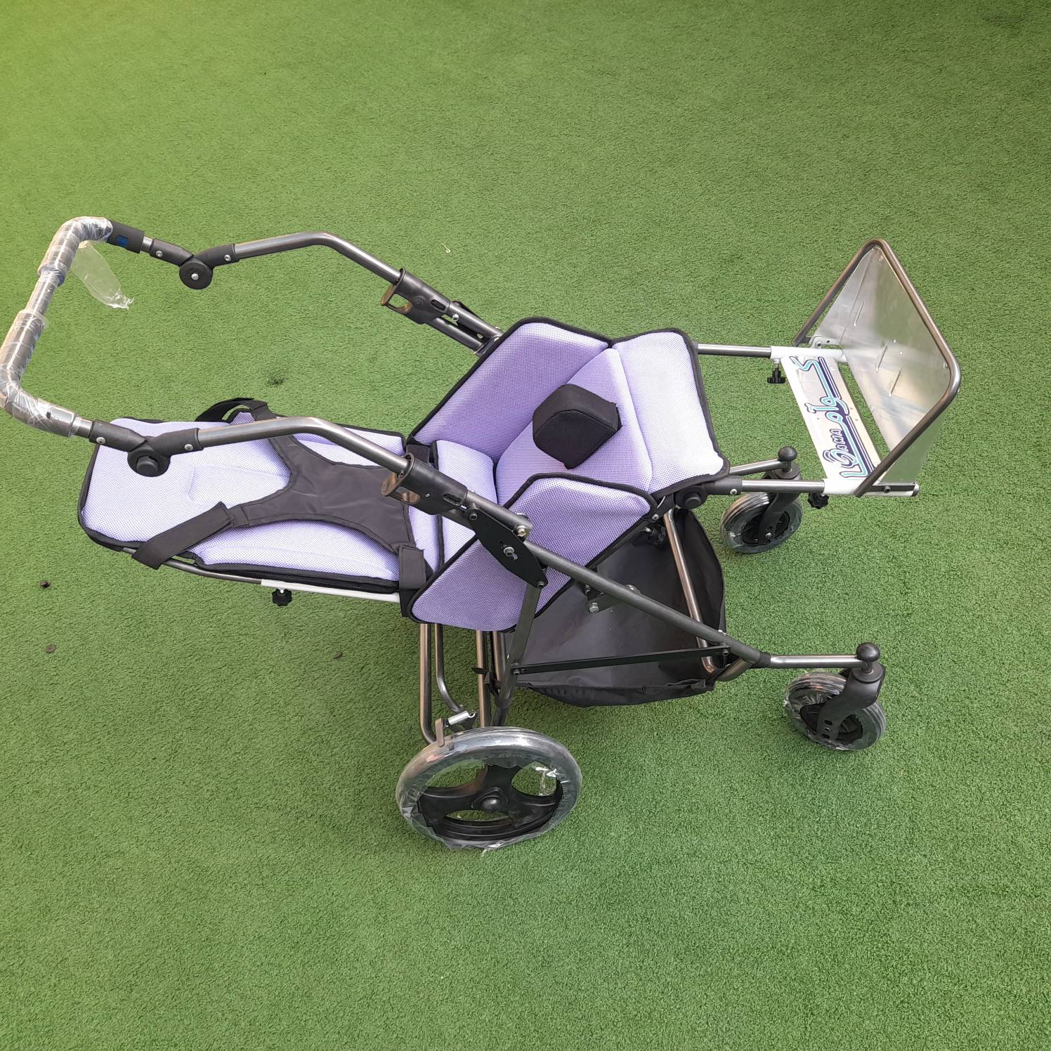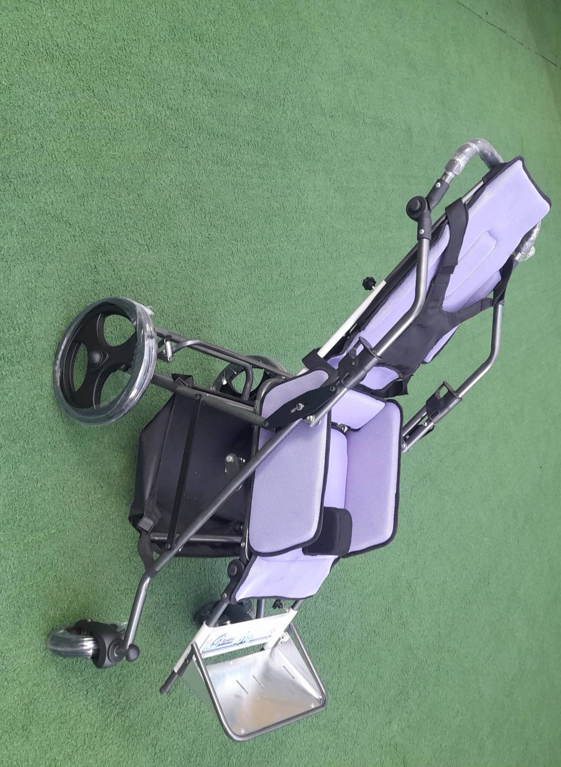 کالسکه حمل کوآما تاشو میباشد/ جاپایی قابل تنظیم/ پشتی قابل تنظیم/ دارای جلیقه نگهدارنده/دارای ترمز روی چرخ های عقب ویلچر
