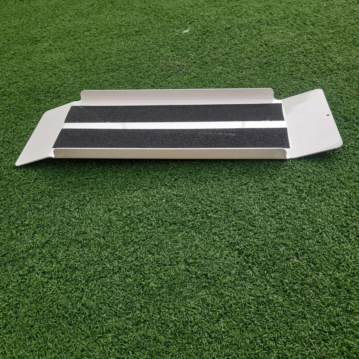 رمپ 50 سانت ویلچر/طول رمپ 66 سانتیمتر/عرض رمپ 12/5 سانتیمتر/وزن رمپ 1.410 کیلوگرم/ضخامت ورق فلزی 2 میلیمتر با پوشش رنگ کوره ای سفید/شیب لبه پایین و بالای رمپ 30 درجه/دارای لبه نگهدارنده با ارتفاع 2/5 سانتمتر