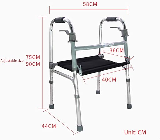 واکر تاشو/ جنس بدنه آلومینیوم/قابل تنظیم ارتفاع/ نشیمن از جنس برزنت وقابل جداشدن