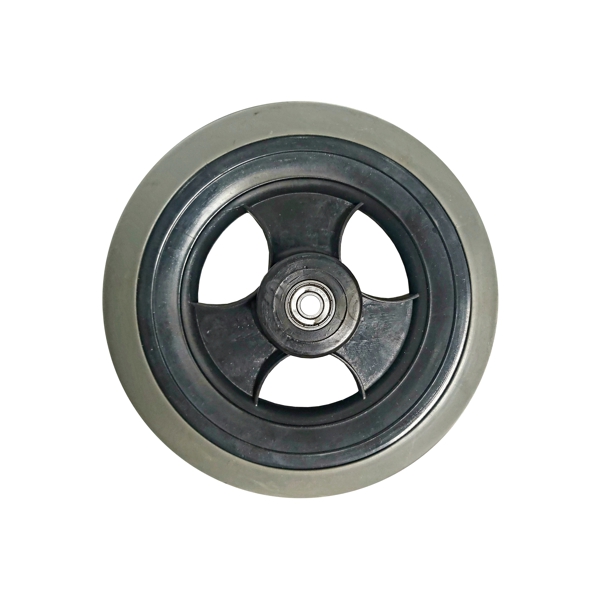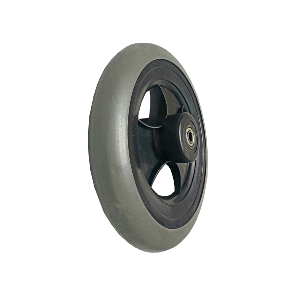 چرخ جلوی ویلچر 8 اینچ با رینگ و بلبرینگ کامل/لاستیک توپربا قطر 190 میلیمتر/ضخامت 54 میلیمتر/وزن 620 گرم/قطر سوراخ وسطی بلبرینگ 8 میلیمتر/رینگ اسپرت بلبرینگ خور
