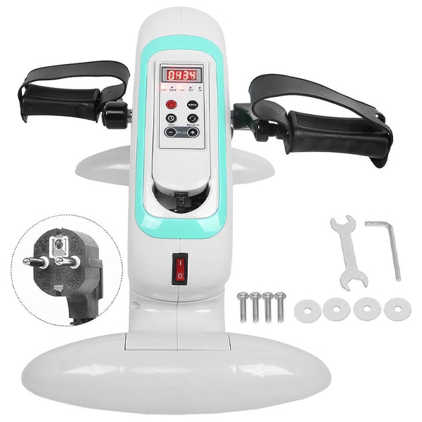 پدال برقی BRIO یک دستگاه فیزیوتراپی خانگی و کلینیکی است که برای تقویت عضلات دست و پا، بهبود گردش خون و بازتوانی بیماران (مثل سکته مغزی، پارکینسون و MS) استفاده میشود.این دستگاه با برق کار میکند و دارای موتور برقی، تایمر قابل تنظیم (۱ تا ۱۵ دقیقه)، چند سطح سرعت و چرخش دوطرفه (جلو و عقب) است. روی آن نمایشگری قرار دارد که زمان، سرعت، مسافت و کالری مصرفی را نشان میدهد.وزنش حدود ۵.۵ کیلوگرم است و ابعاد آن تقریباً ۲۲×۳۰×۴۲ سانتیمتر است. بهراحتی روی میز یا زمین قرار میگیرد و هم برای دست و هم برای پا قابل استفاده است.در کل، دستگاهی سبک، ساده و مناسب برای تمرینهای توانبخشی و فیزیوتراپی در منزل است