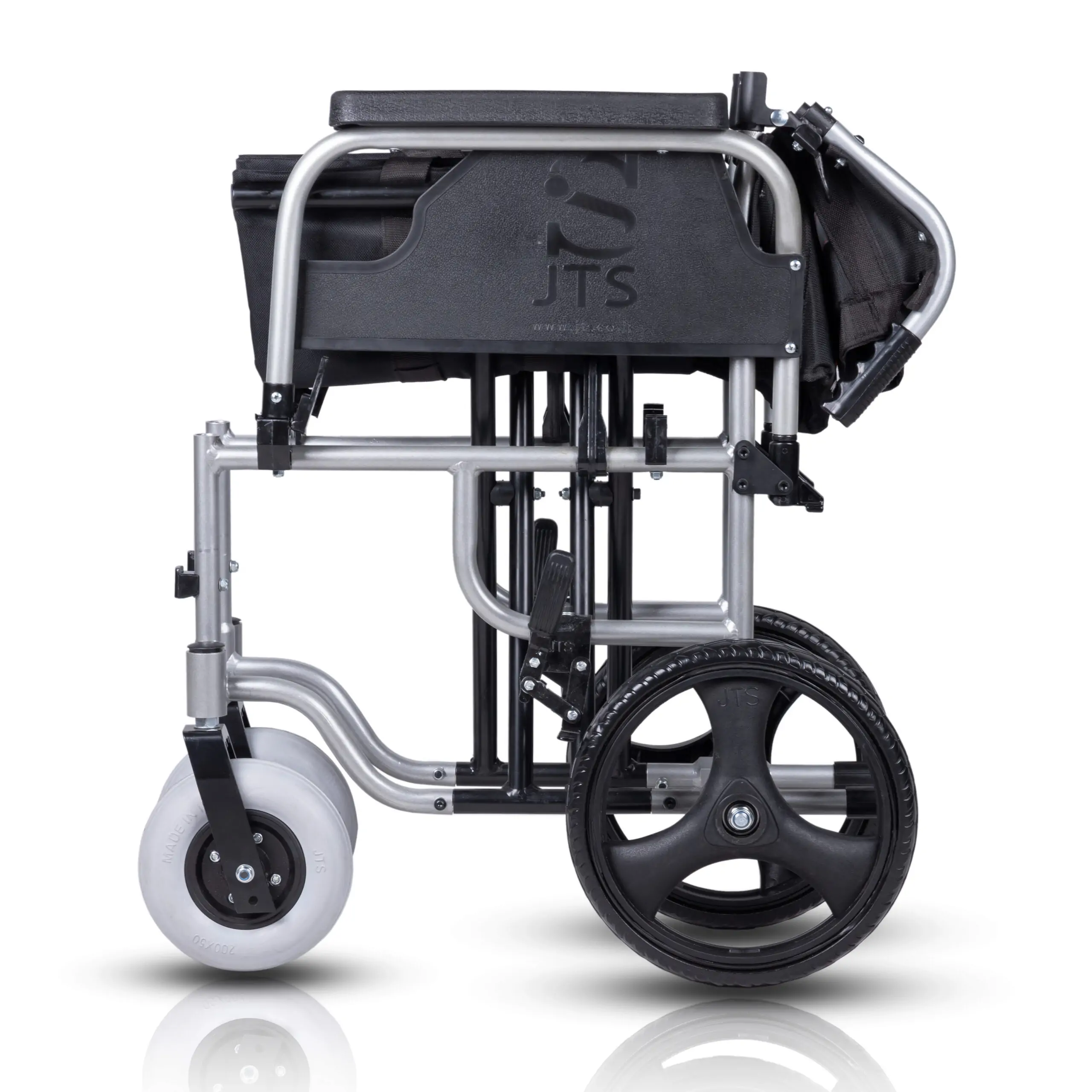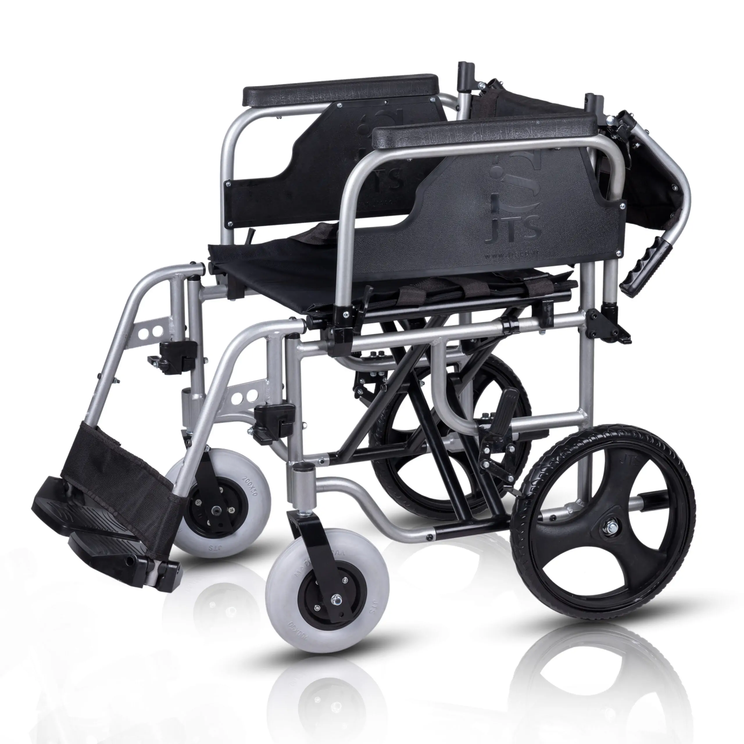 بدنه آلومینیومی سبک و مقاوم – ضدزنگ، مناسب حمل آسان چرخ عقب توپر ۱۲ اینچی – بدون نیاز به باد، با رینگ اسپرت چرخ جلو PU ضدپنچری با چرخش روان پشتی و نشیمنگاه برزنتی – زیر دستی متحرک با امکان بالا رفتن جهت جابجایی بیمار زیرپایی تاشو و متحرک (جداشونده) از جنس پلاستیکی نشکن کمربند ایمنی برای حفظ ثبات بیمار دسته ترمز برای همراه روی دسته عقب قابلیت تاشو با پشتی تاشونده از وسط مناسب برای کاربران تا وزن ۱۰۰ کیلوگرم _شاسی دوبل تقویت شده