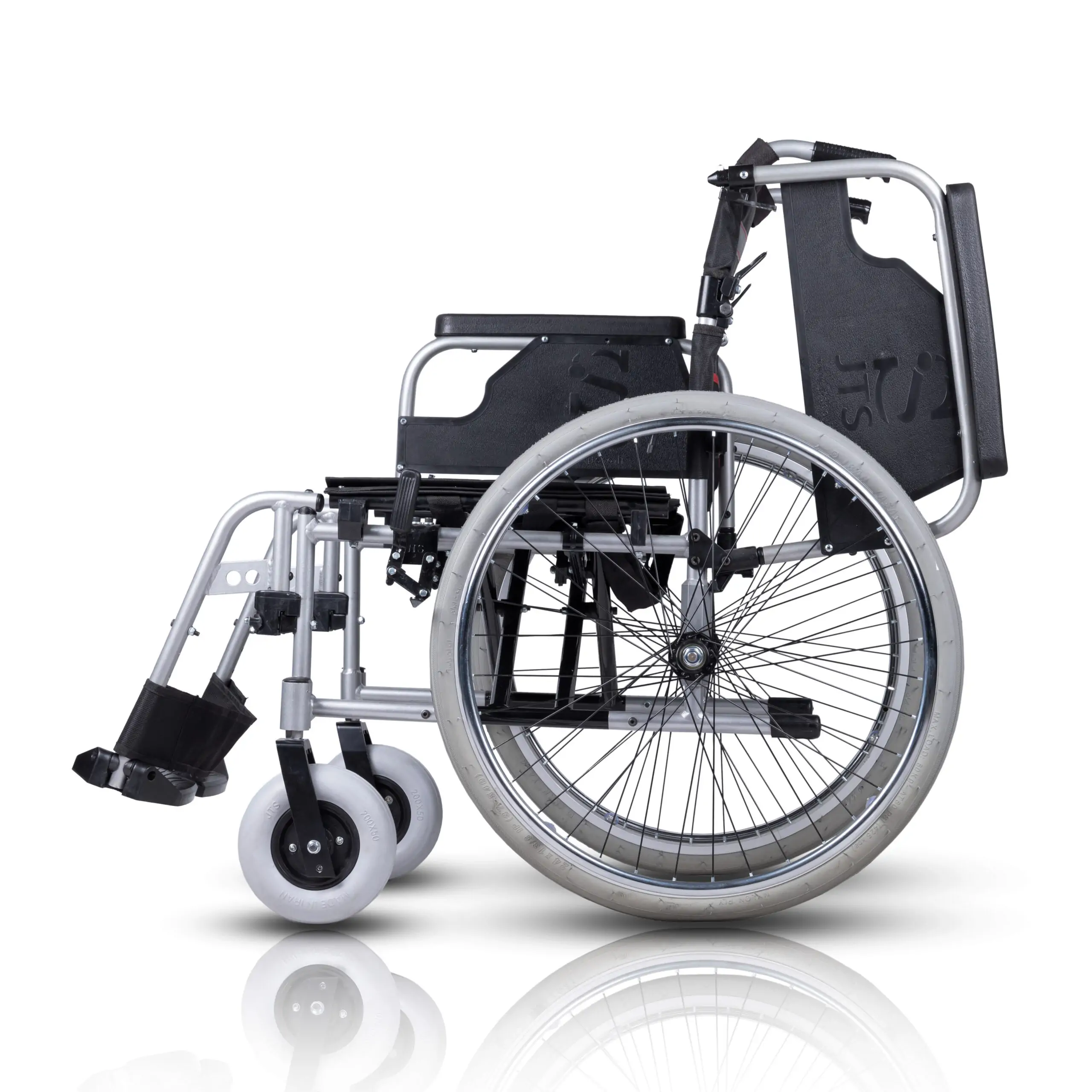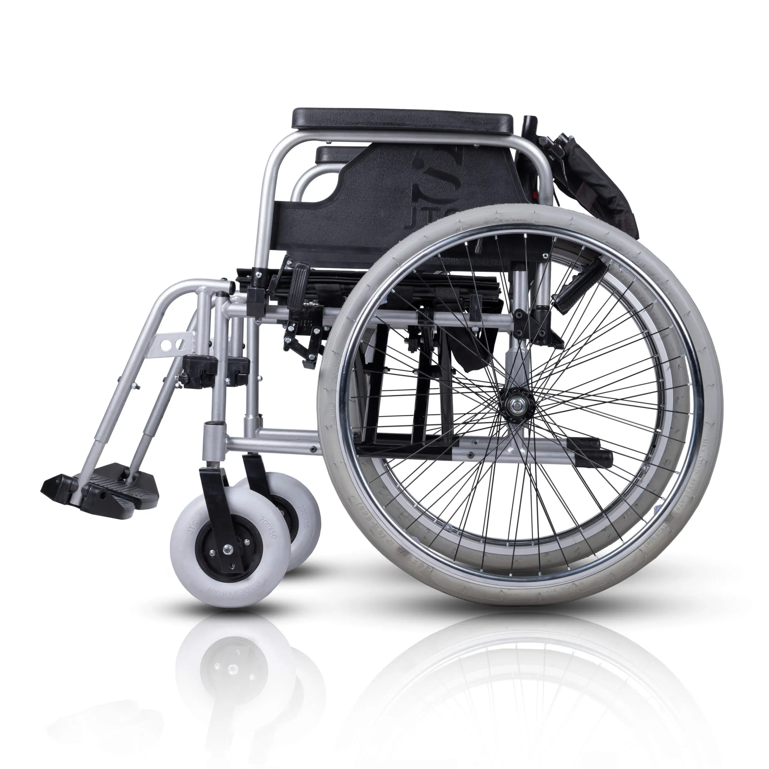 جاپایی ویلچر آلومینیومی برند جی تی اس مدل 908L خوش ساخت هم از فلز آلومینیوم انتخاب شده که قابلیت تحرک دارد تا بتوان متناسب با فرم قرارگیری پا تنظیم شود . جاپایی به همراه پشتی برزنتی مشکی زیبایی خاصی به این ویلچر داده است این ویلچر قابلیت تا شدن دارد تا فضای کمتری اشغال کند و به راحتی در صندوق عقب خودرو قرار بگیرد