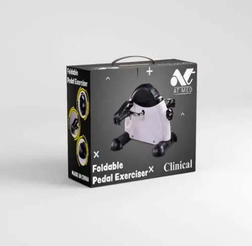 بر روی این دستگاه دکمه MOOD وجود دارد که با فشردن آن می توانید از کالری سنج، تایمر و سرعت در دقیقه نیز مطلع شوید. پدال مکانیکی فیزیوتراپی دست و پا برند AT MED مدل کیلینیکال با صفحه نمایش دیجیتال خوانا تنها با یک قلم نیم قلم کار می کند. پایه های مینی دوچرخه ATMED به گونه ای طراحی شده اند که از لیز خوردن، حرکت به جلو و عقب هنگام رکاب زدن جلوگیری می کنند. پیچ روی این محصول سرعت پدال ها را به دلخواه تغییر می دهد. با چرخاندن آن می توانید سرعت پدال ها را کم یا زیاد کنید. ویژگی منحصر به فرد این پدال تاشو بودن آن است که فضای کمی را اشغال می کند.